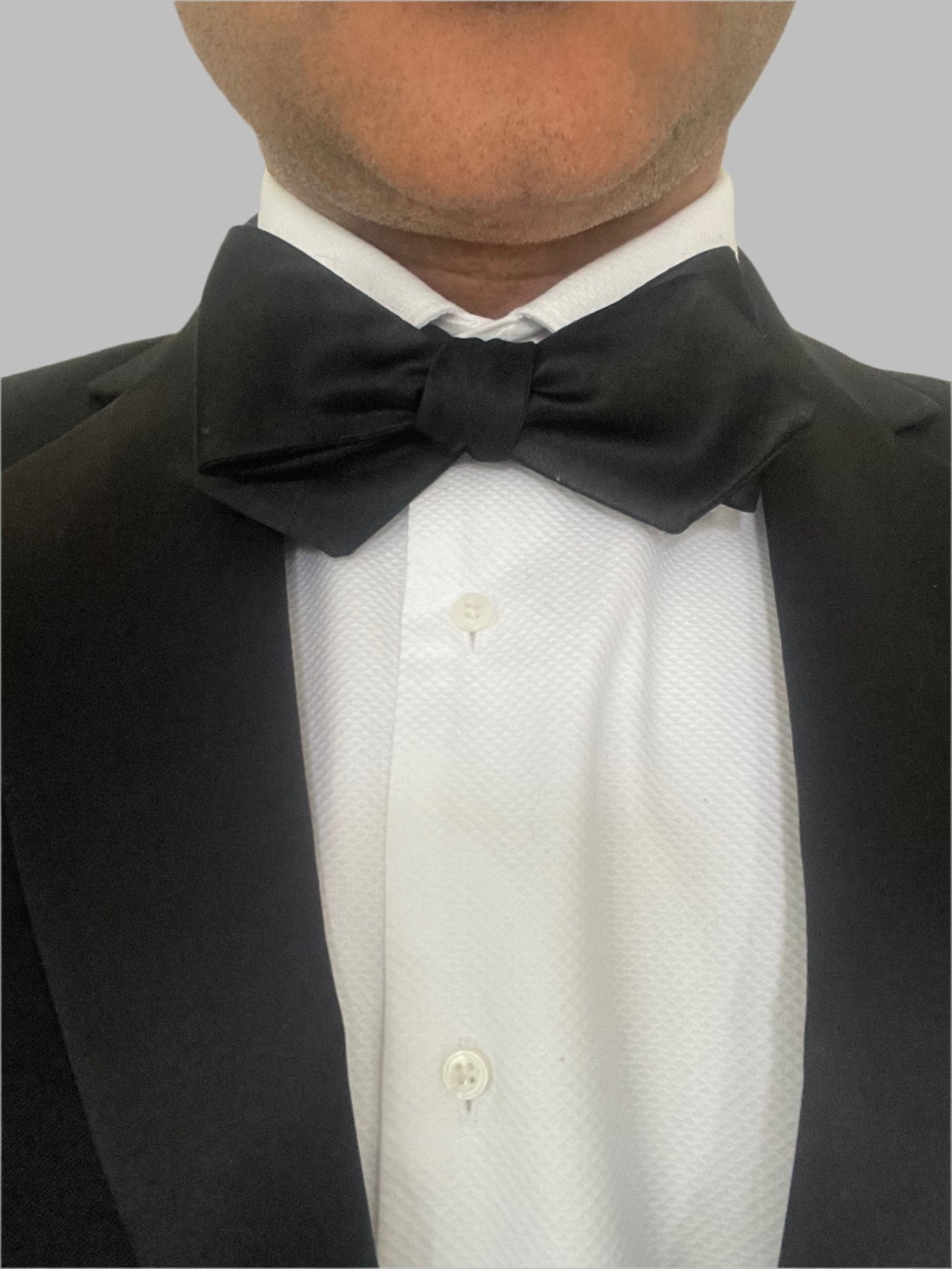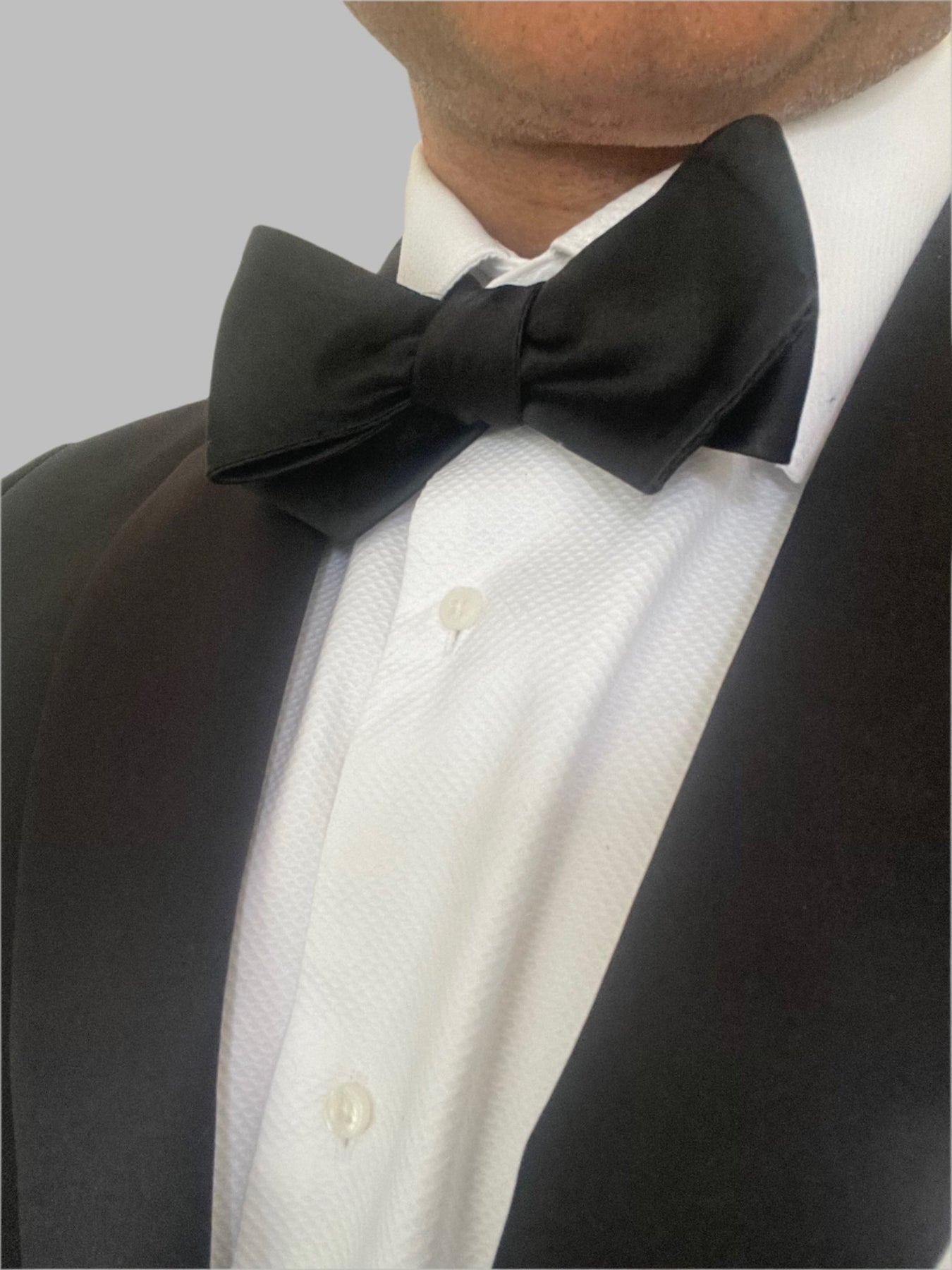 Genuine bowties are meant to have a charming imperfection. Avoid pre-tied bowties, as their flawless appearance lacks the authenticity of a hand-tied bowtie, which can be adjusted and undone for a truly elegant look.