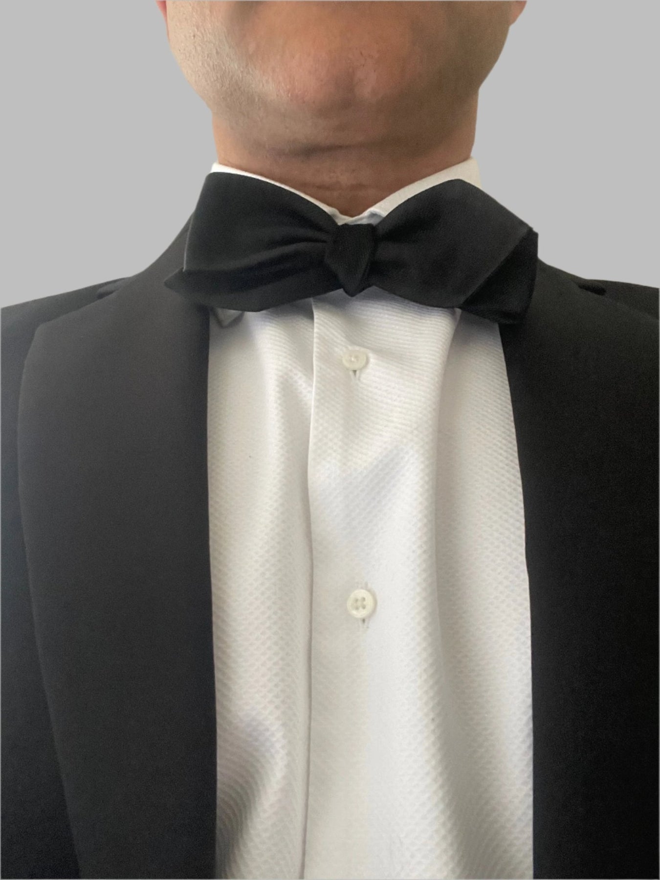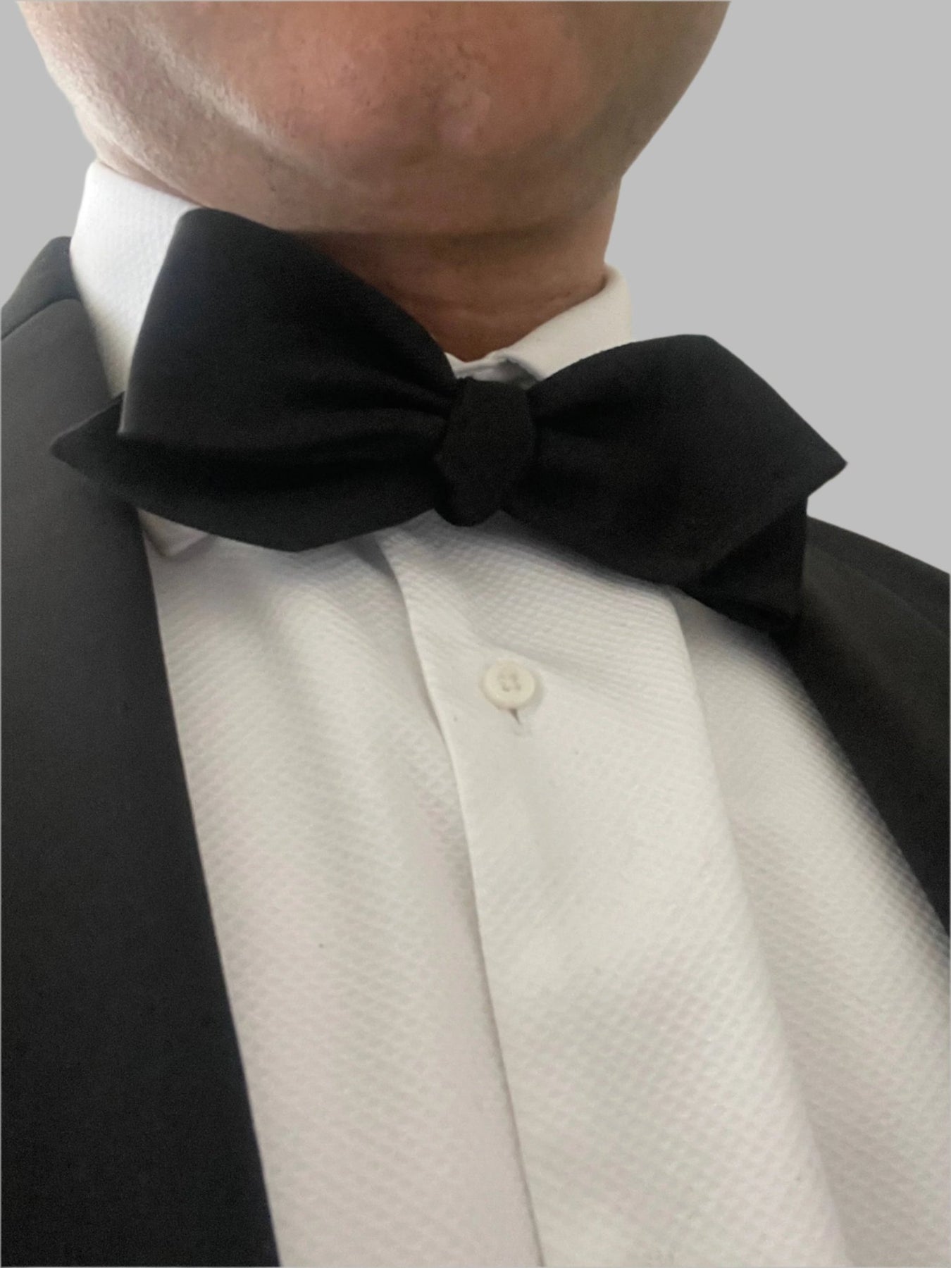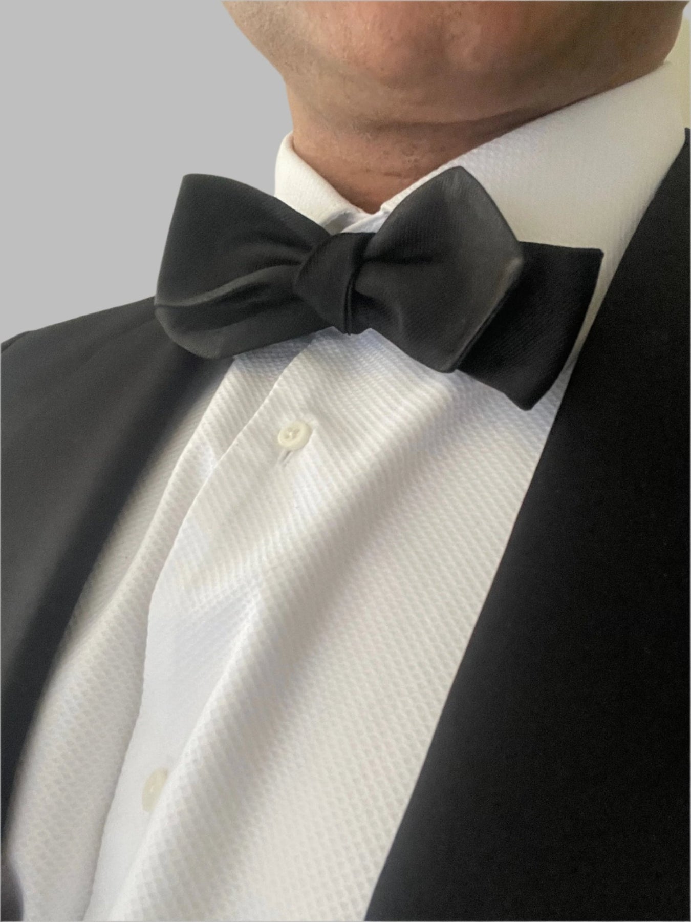 Keep in mind that genuine bowties are meant to have a charming imperfection. Avoid pre-tied bowties, as their flawless appearance lacks the authenticity of a hand-tied bowtie, which can be adjusted and undone for a truly elegant look.