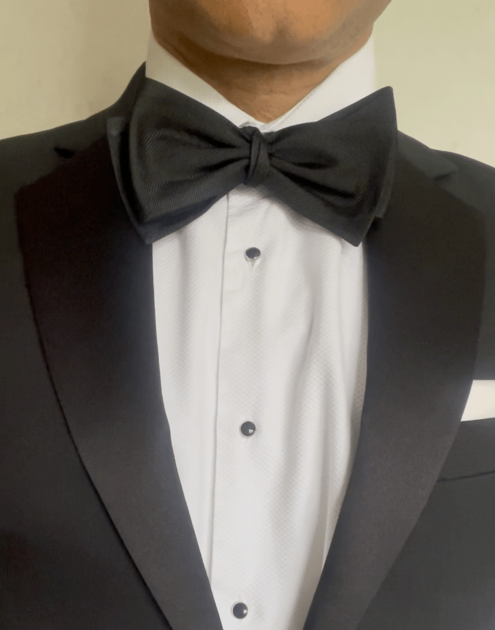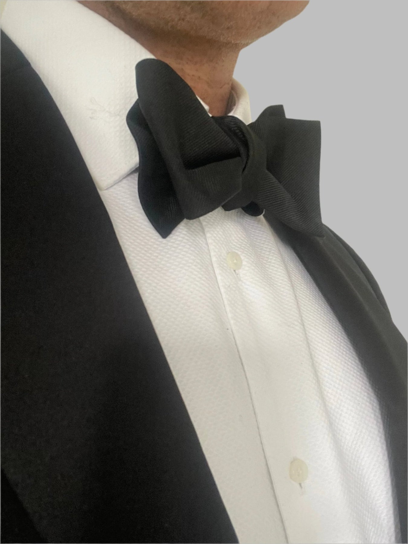 Keep in mind that genuine bowties are meant to have a charming imperfection. Avoid pre-tied bowties, as their flawless appearance lacks the authenticity of a hand-tied bowtie, which can be adjusted and undone for a truly elegant look.