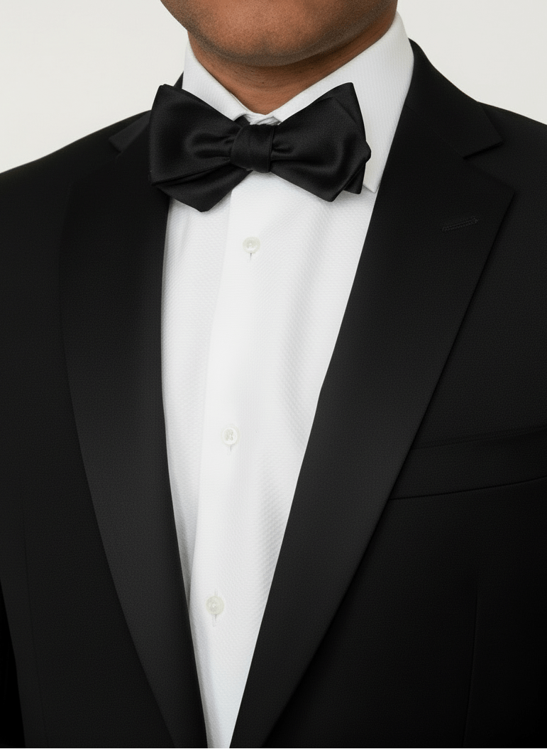 Genuine bowties are meant to have a charming imperfection. Avoid pre-tied bowties, as their flawless appearance lacks the authenticity of a hand-tied bowtie, which can be adjusted and undone for a truly elegant look.