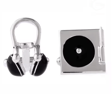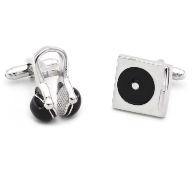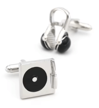 Spin some style with these DJ headphone and turntable cufflinks. Made of silver and black, these unique accessories bring the beat to any outfit. Perfect for music lovers / DJs alike!