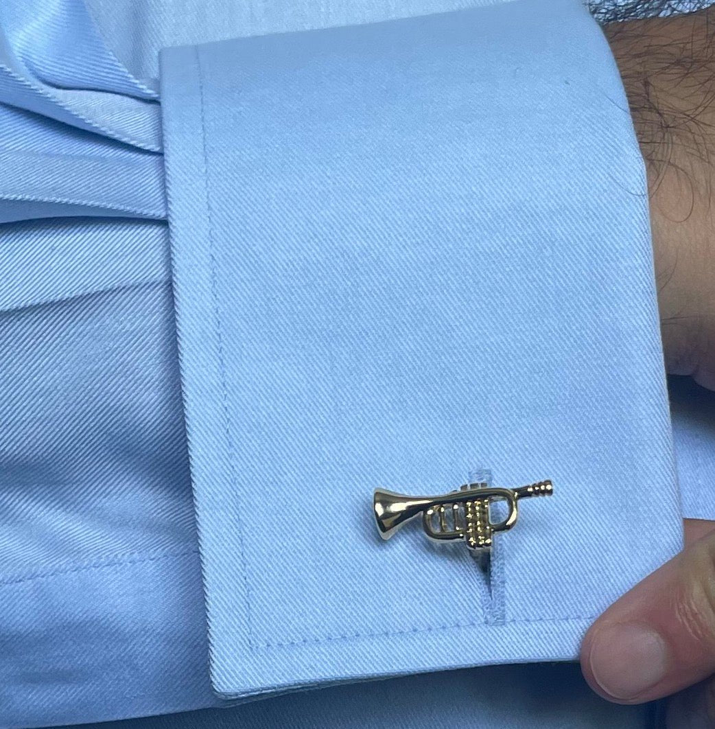 Add a touch of musical flair to any outfit with these silver trumpet cufflinks. Perfect for jazzing up your formal wear, they're a must-have for any music lover. Show off your playful personality with these quirky accessories. (No musical talent required!)