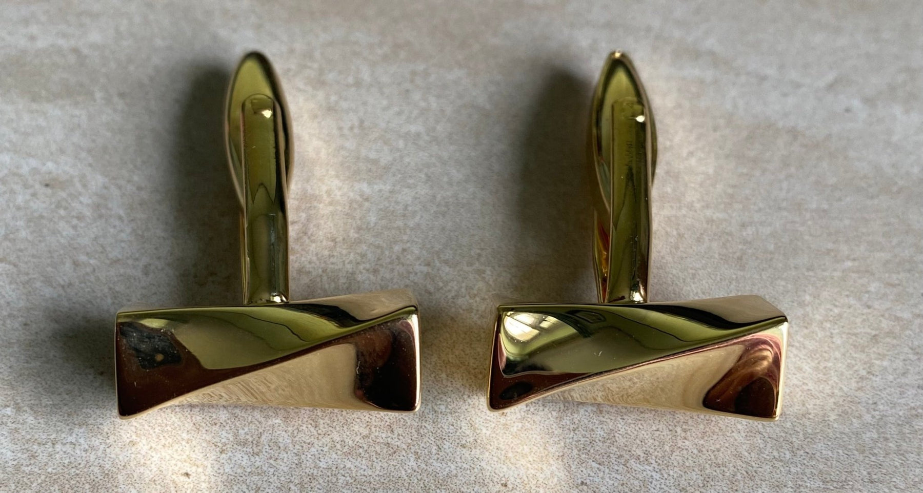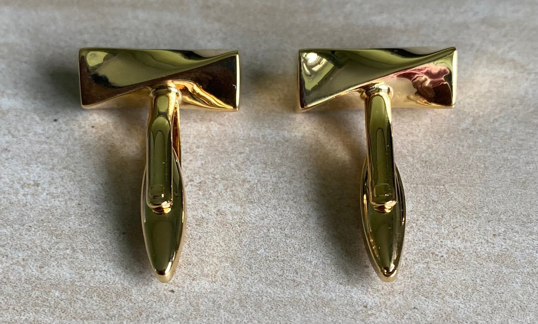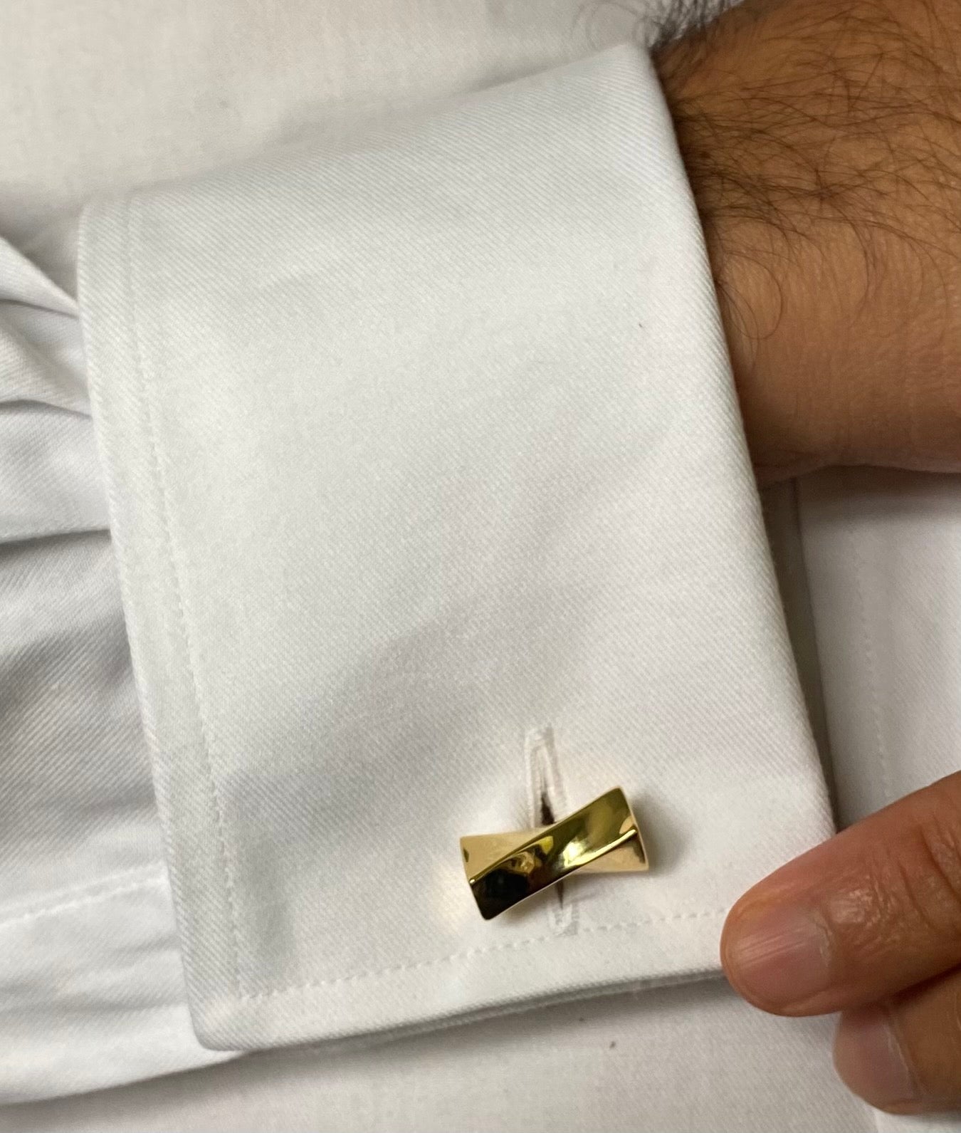 Introducing these gold twisted bar cufflinks. Each cufflink features a shiny twisted metal timeless design symbolising grace and style.