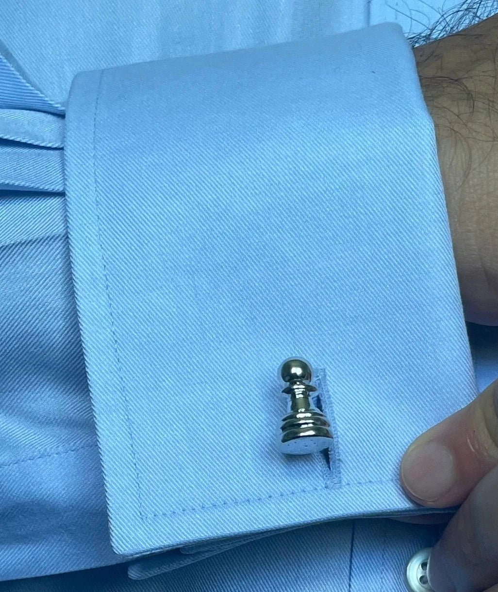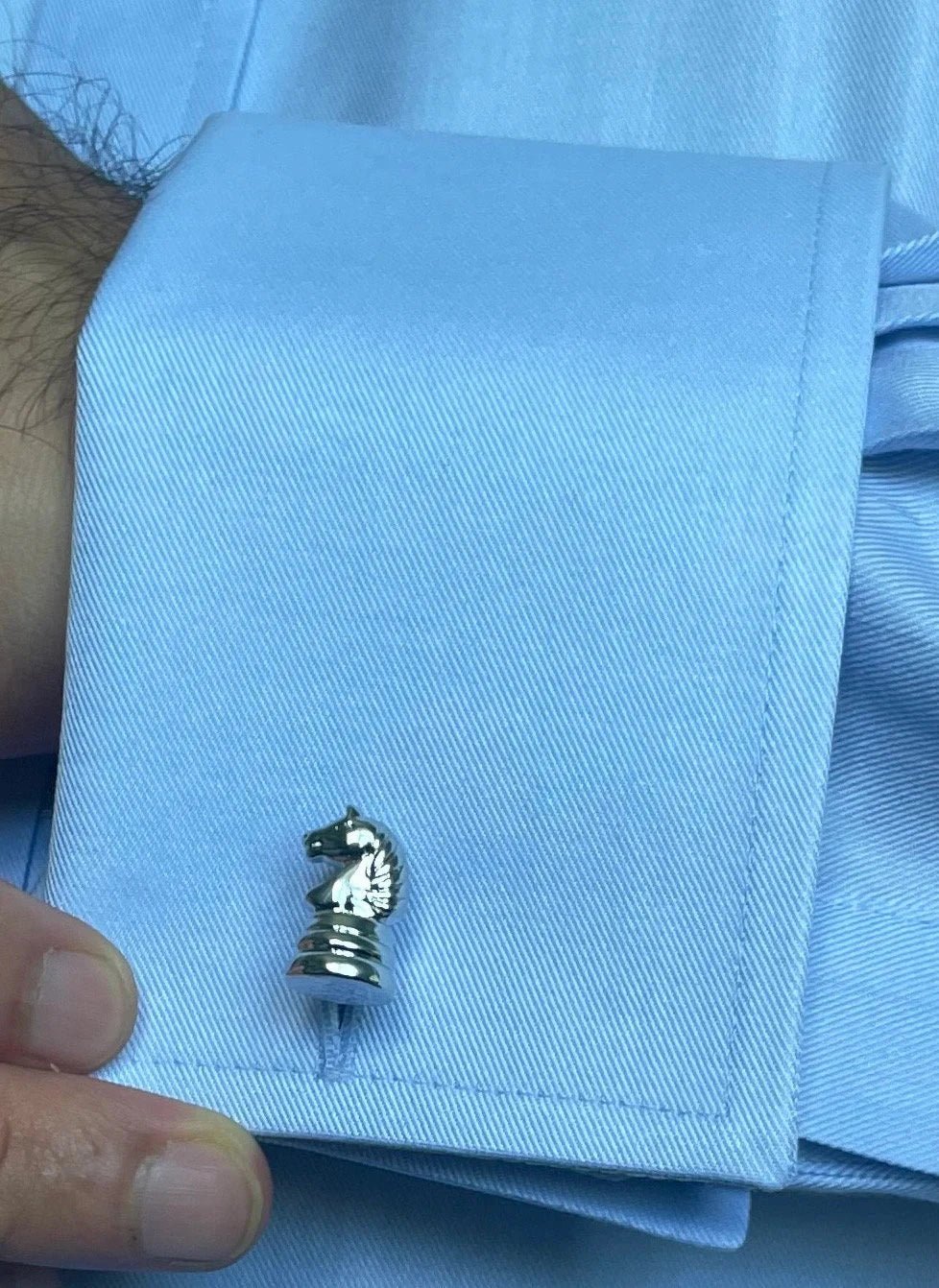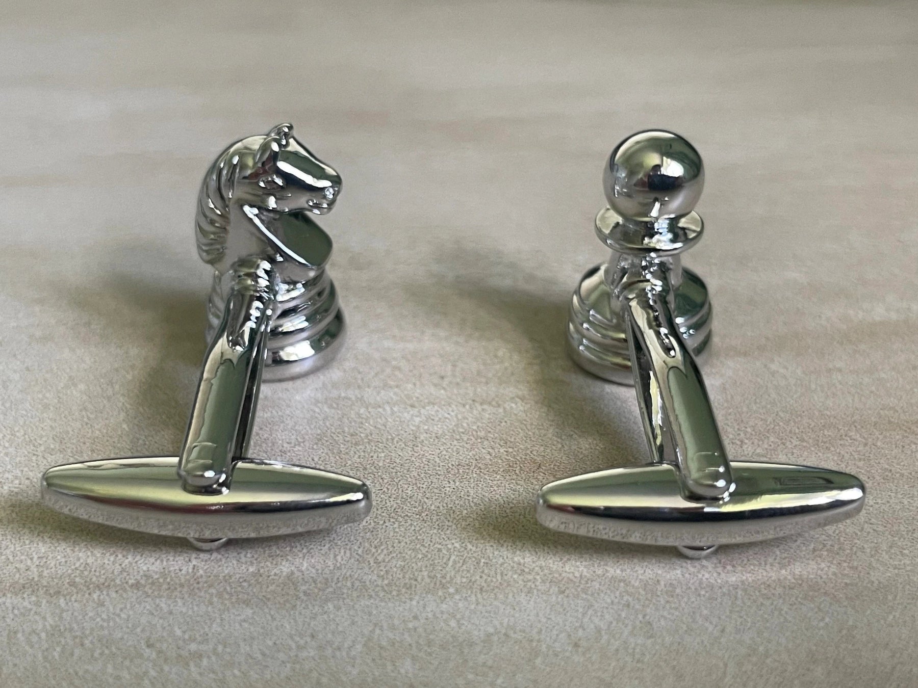 Knight takes pawn or pawn takes knight! These cufflinks are meant for the chess lover with a silver horse and pawn chess piece. With these beautiful chess piece cufflinks you're always one step ahead of the game!