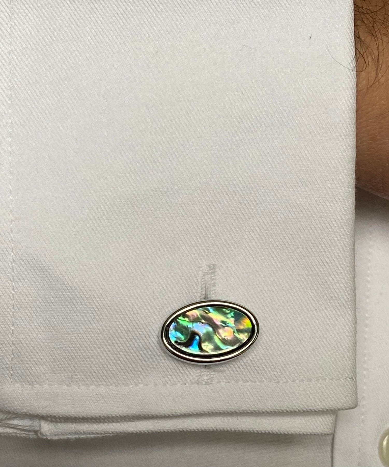 Elevate your style with our Oval Mother of Pearl Smart Cufflinks. These sophisticated cufflinks feature oval-shaped mother of pearl, adding a touch of luxury to any outfit. With their elegant design and premium materials, these cufflinks are the perfect accessory for any fashion-forward individual. Complete your look with these exclusive cufflinks.  This natural material is formed by molluscs coating their inner shell to protect them against parasites.