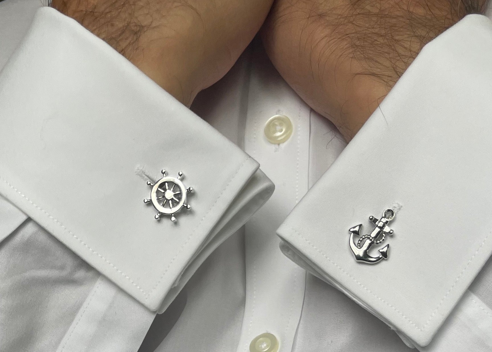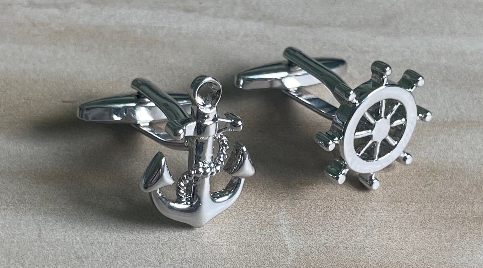 Silver Anchor with Rope and Helm Cufflinks