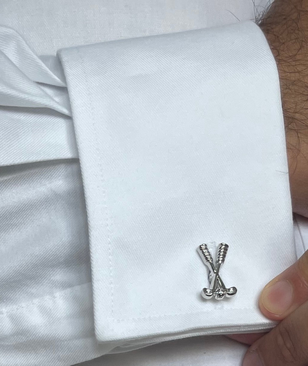 Introducing these silver golf clubs and ball cufflinks. The perfect accessory for the avid golfing enthusiast that looks tee-rific on their sleeves.