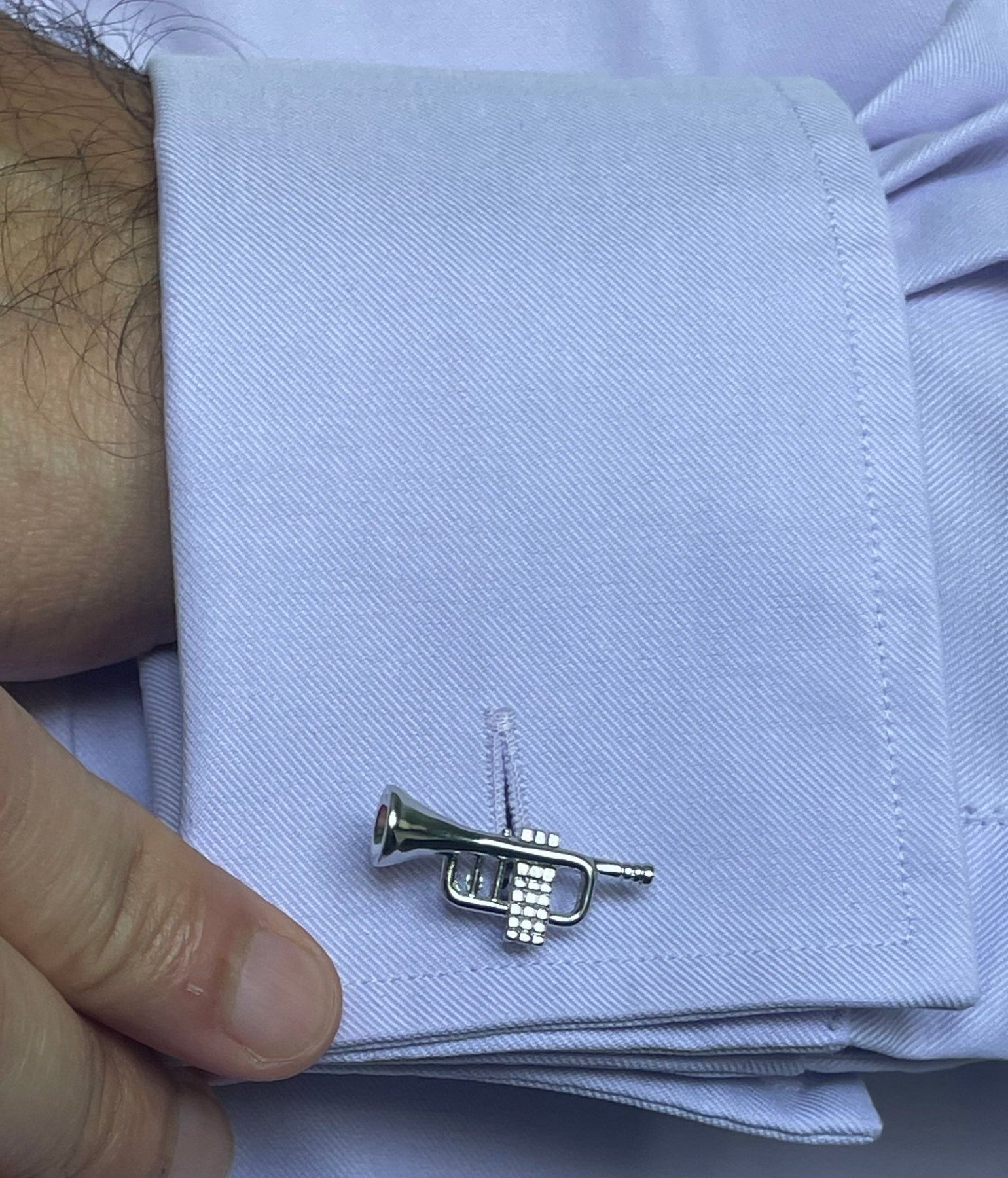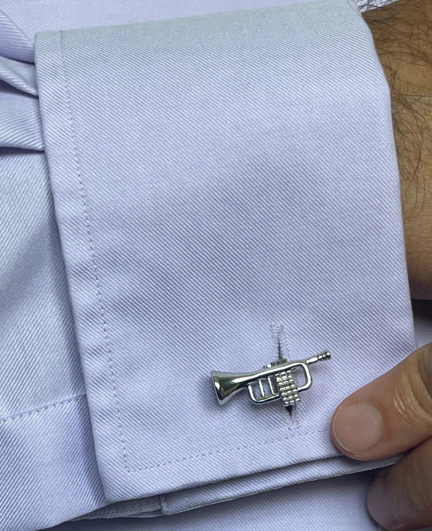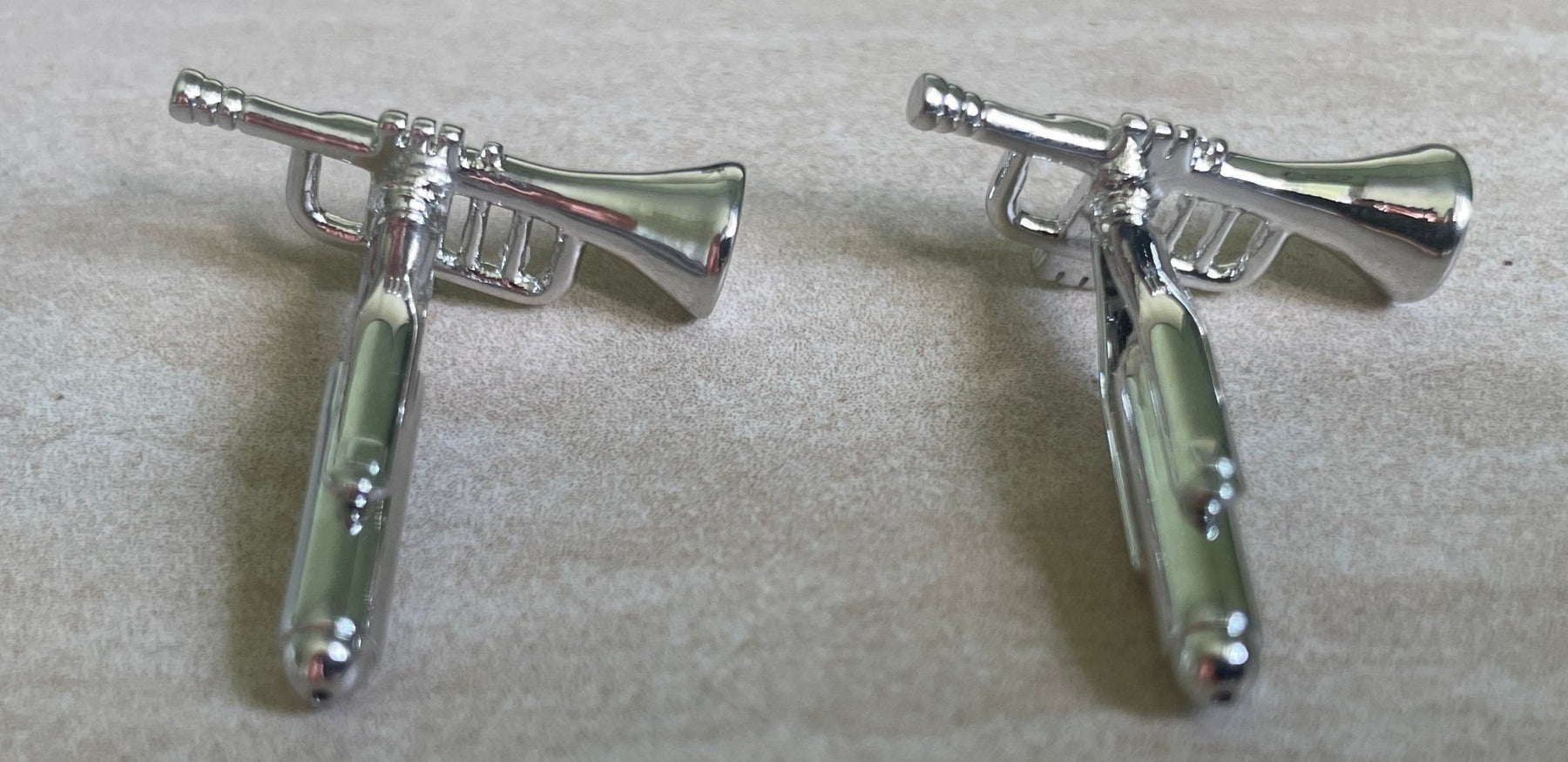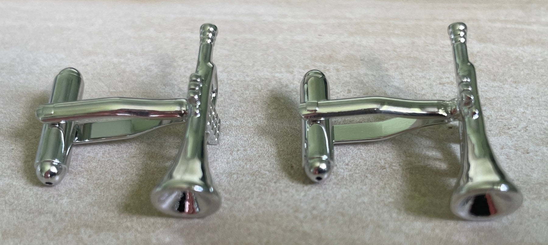 Add a touch of musical flair to any outfit with these silver trumpet cufflinks. Perfect for jazzing up your formal wear, they're a must-have for any music lover. Show off your playful personality with these quirky accessories. (No musical talent required!)