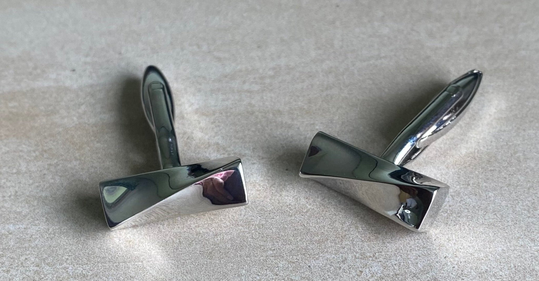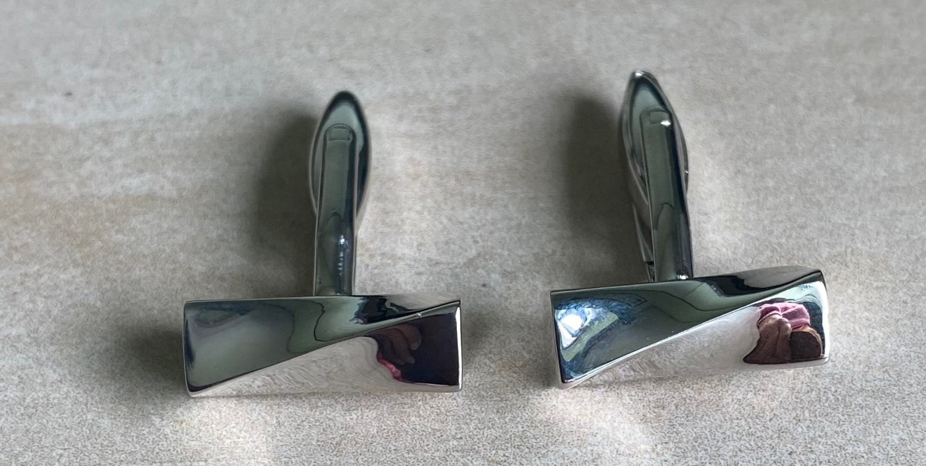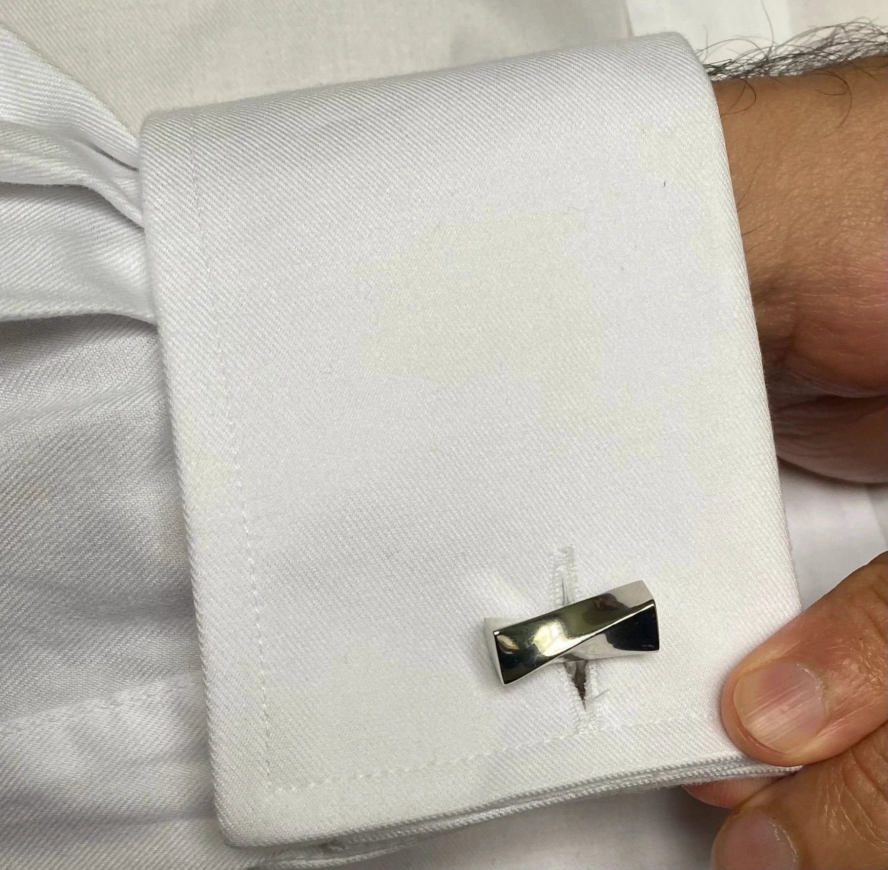 Introducing these silver twisted bar cufflinks. Each cufflink features a shiny twisted metal timeless design symbolising grace and style.