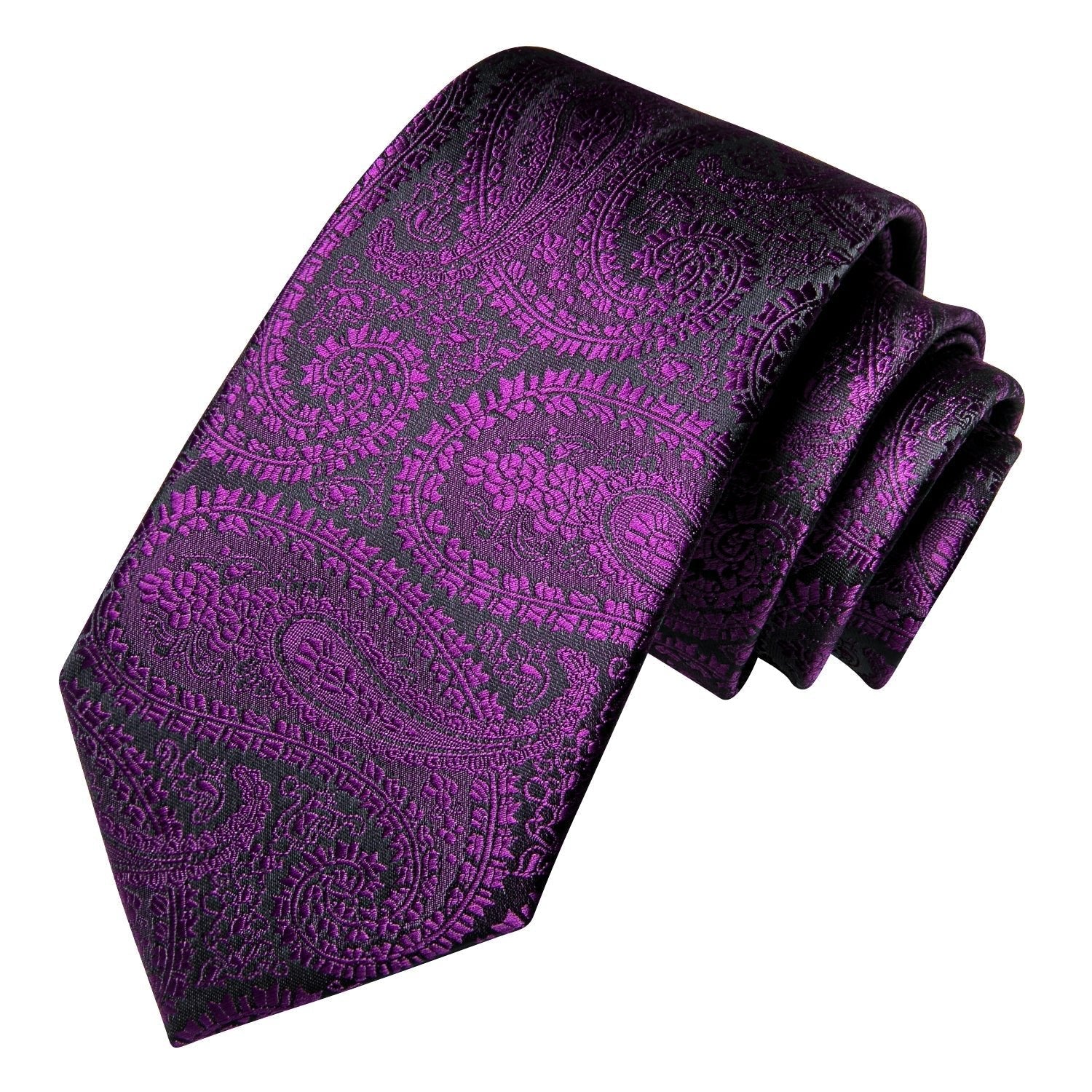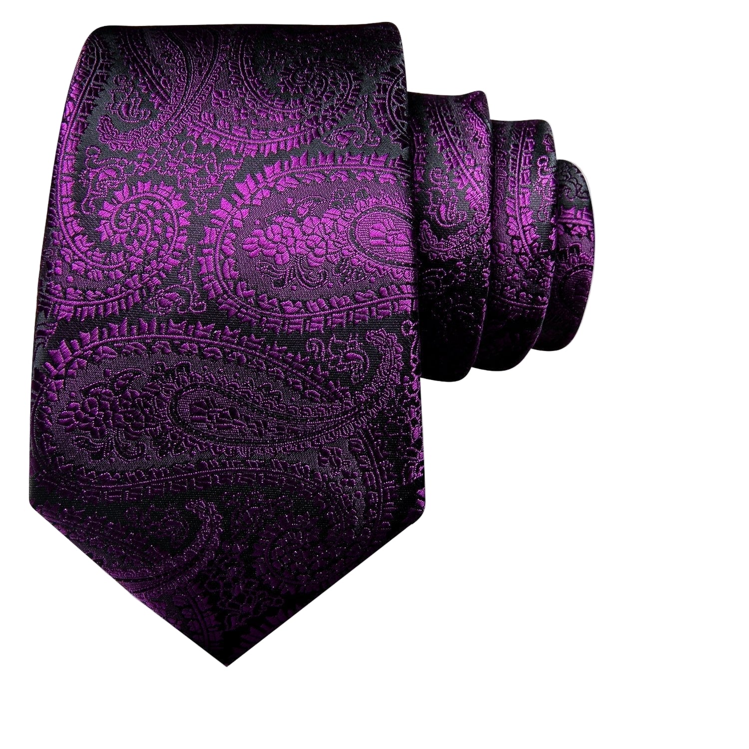 Dapper Essentials introduces a expertly crafted silk tie featuring a sophisticated paisley design in deep purple and black.