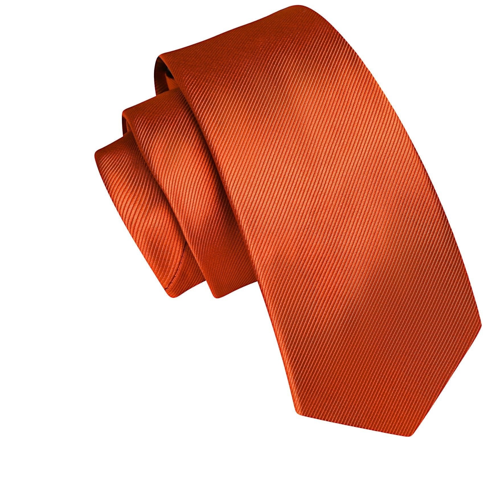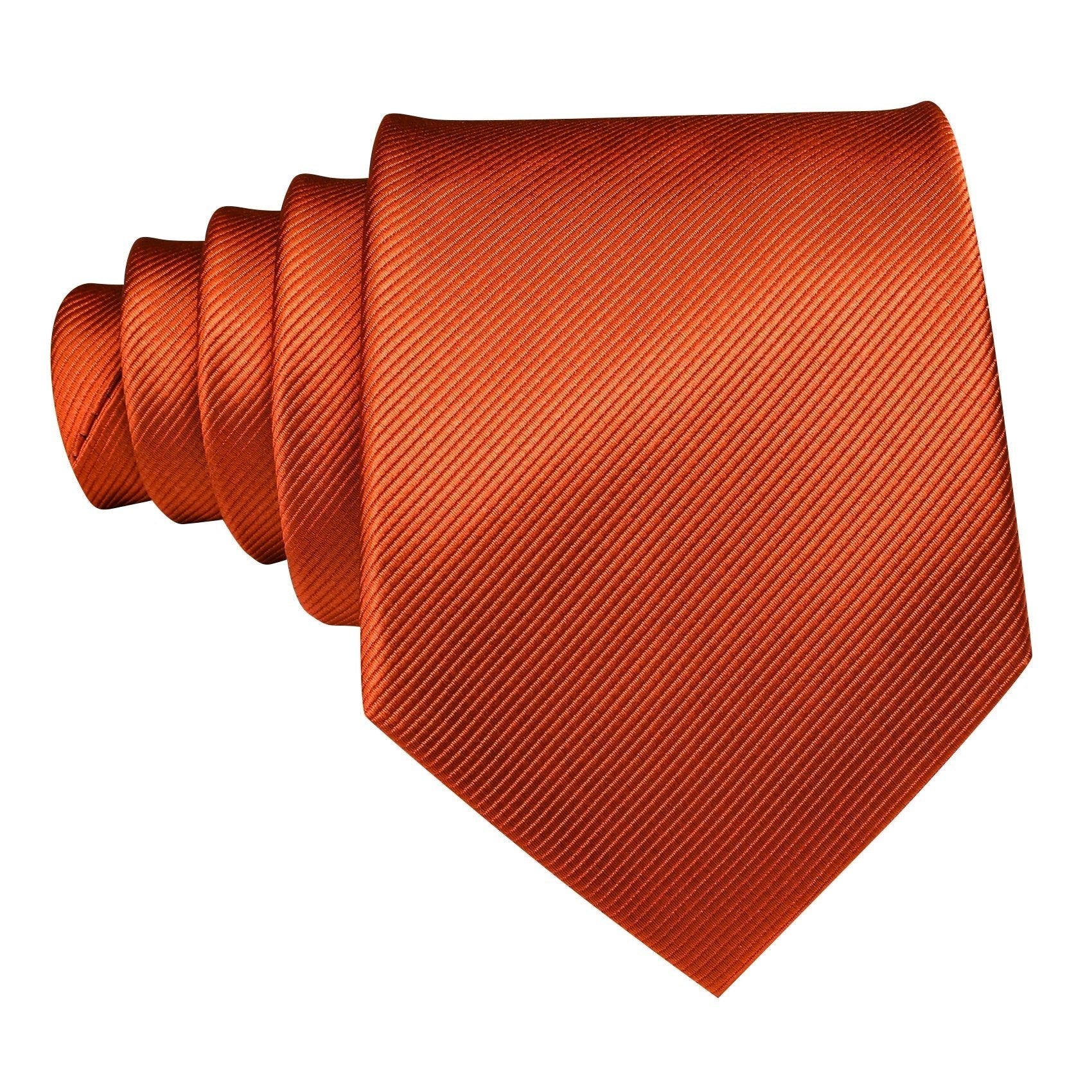 Dapper Essentials presents a 100% woven silk tie in a solid orange hue.