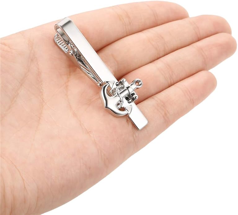 Secure your style with our Anchor & Rope Tie Bar! This sleek silver coloured accessory adds a bold touch to any outfit while symbolising your adventurous spirit. The anchor represents stability while the rope signifies strength and determination. Perfect for those who aren't afraid to take risks! The ideal accessory for any seaman, sailor or nautical enthusiast.