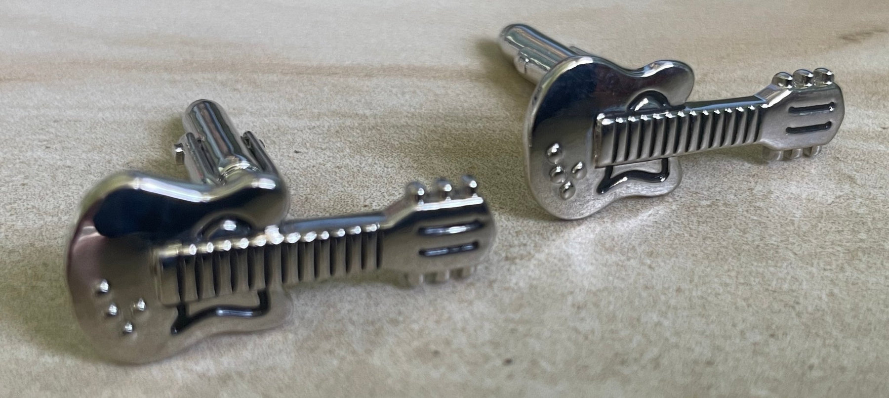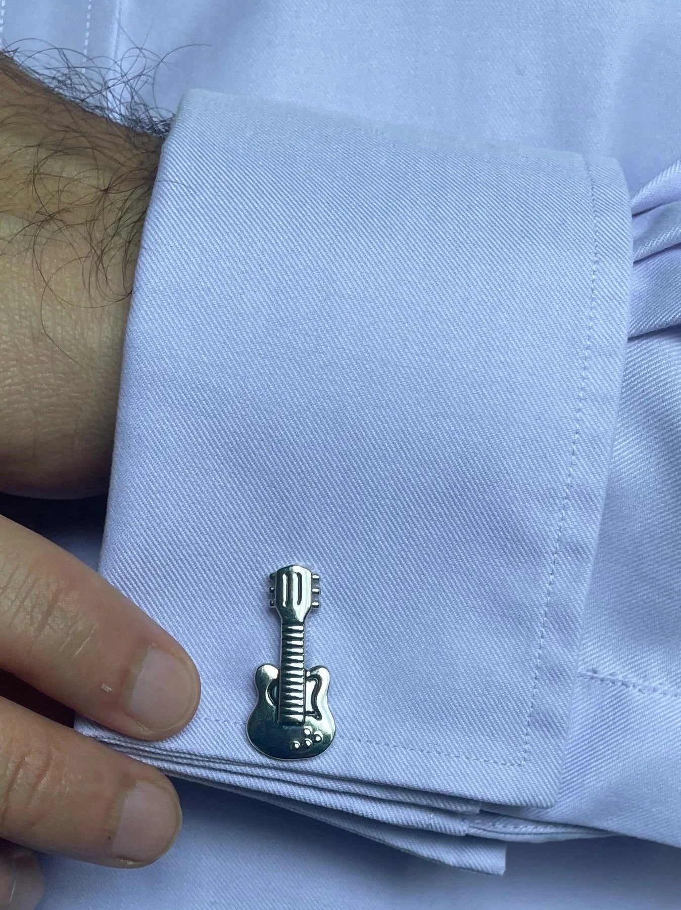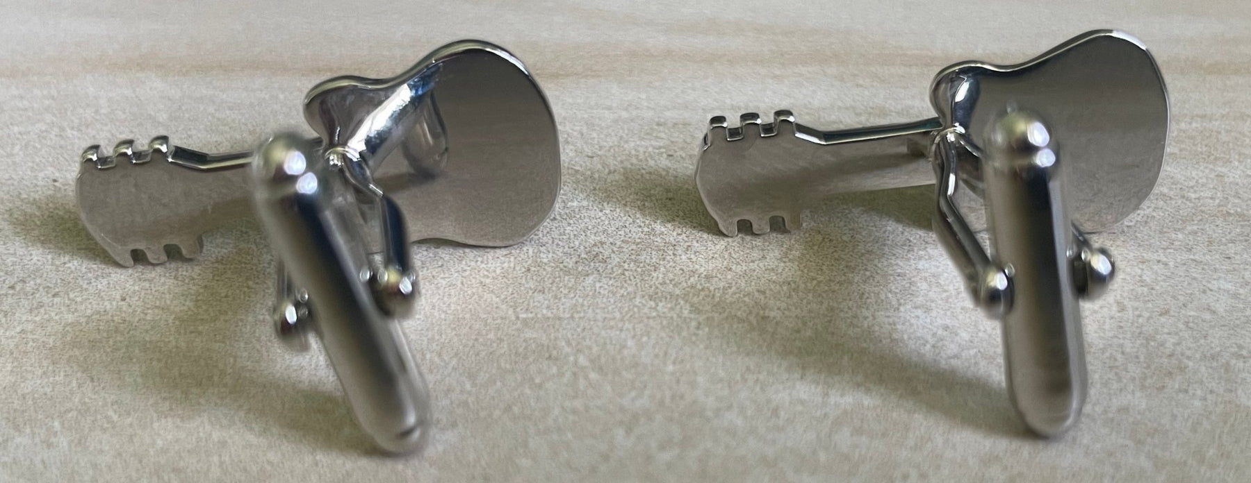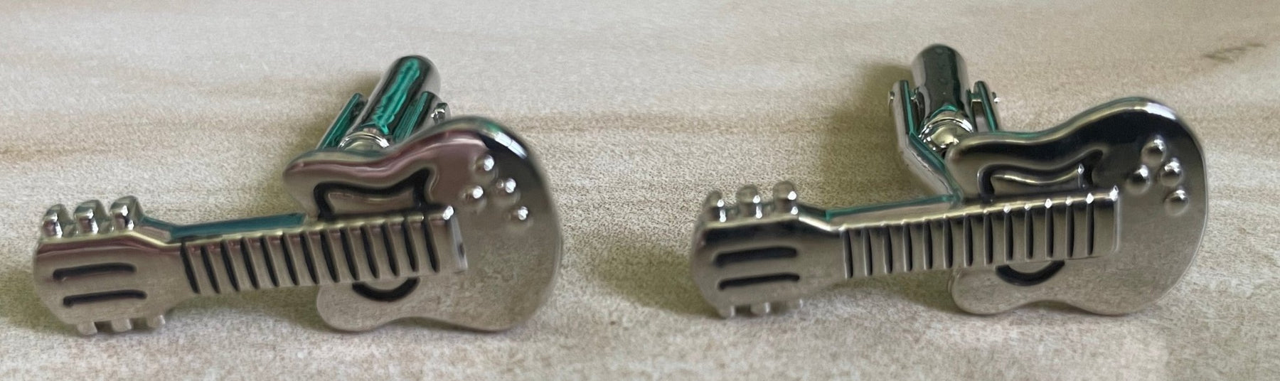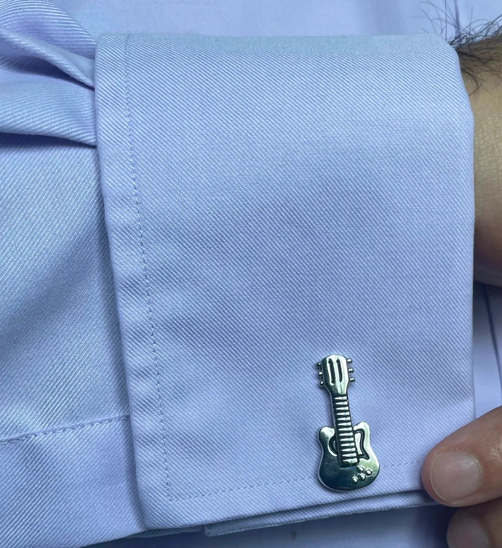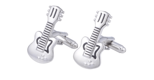 Add some musical flair to your formal attire with these quirky Acoustic Guitar cufflinks! Featuring a sleek black design, they're sure to make a statement at any event. These cufflinks are the perfect combination of style and fun.  Perfect for the budding guitarist, music lover / singer song writer.
